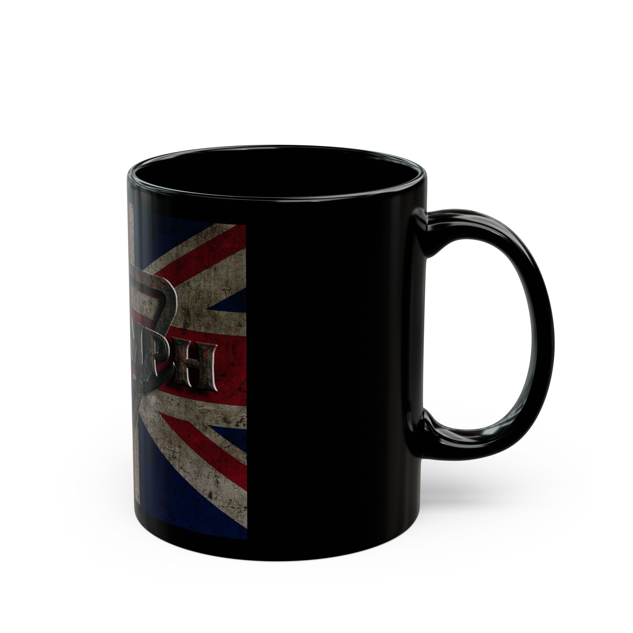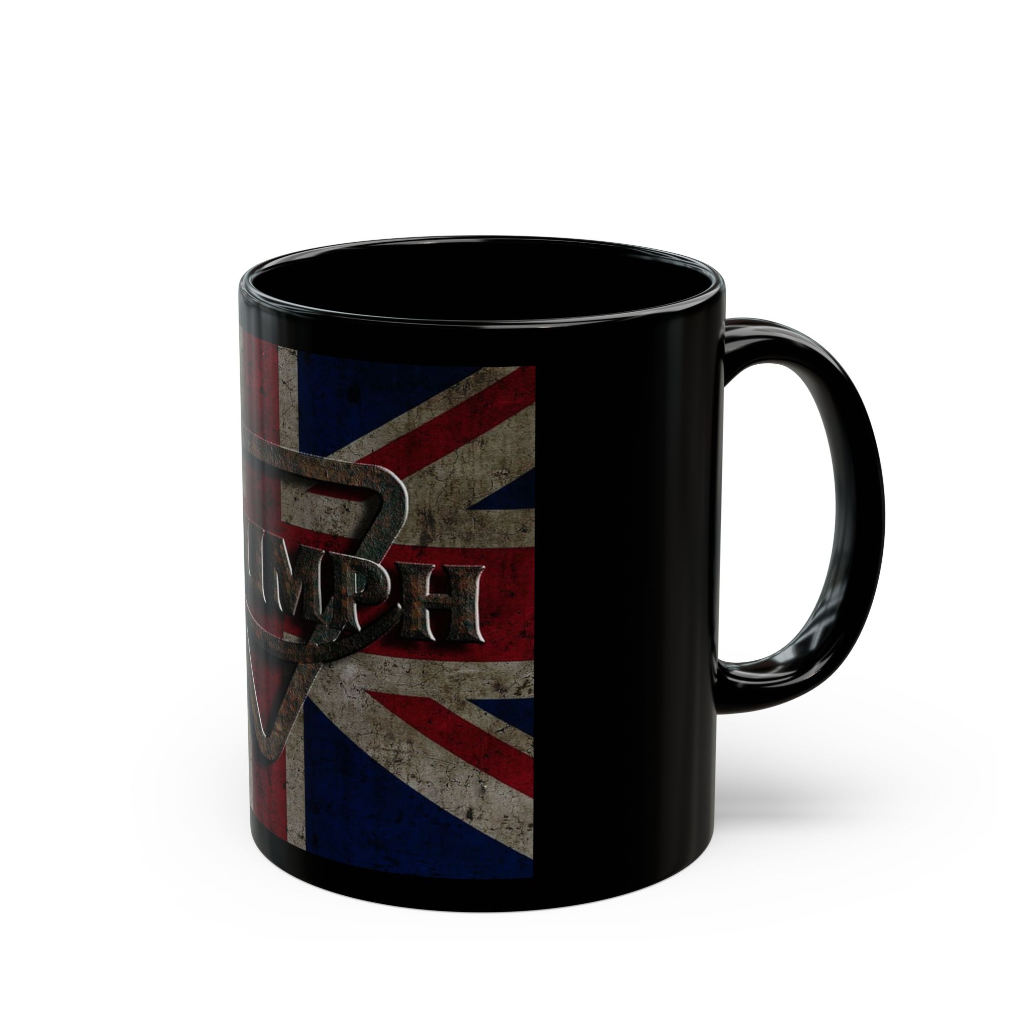 This glossy black ceramic mug carries a weathered Union Jack backdrop with a raised, metallic-style Triumph emblem at its center. Each sip feels a little like a roadside stop on a long ride — gritty, proud, and unmistakably British. The deep black finish makes the colors pop while hiding coffee stains between washes. It sits solid in the hand thanks to a C-shaped handle and feels sturdy enough for daily use, whether you’re easing into a morning brew or topping up during a garage project. Bring a touch of moto heritage to a workbench, office desk, or kitchen counter and let it start conversations about long roads, classic bikes, and evenings spent tinkering.